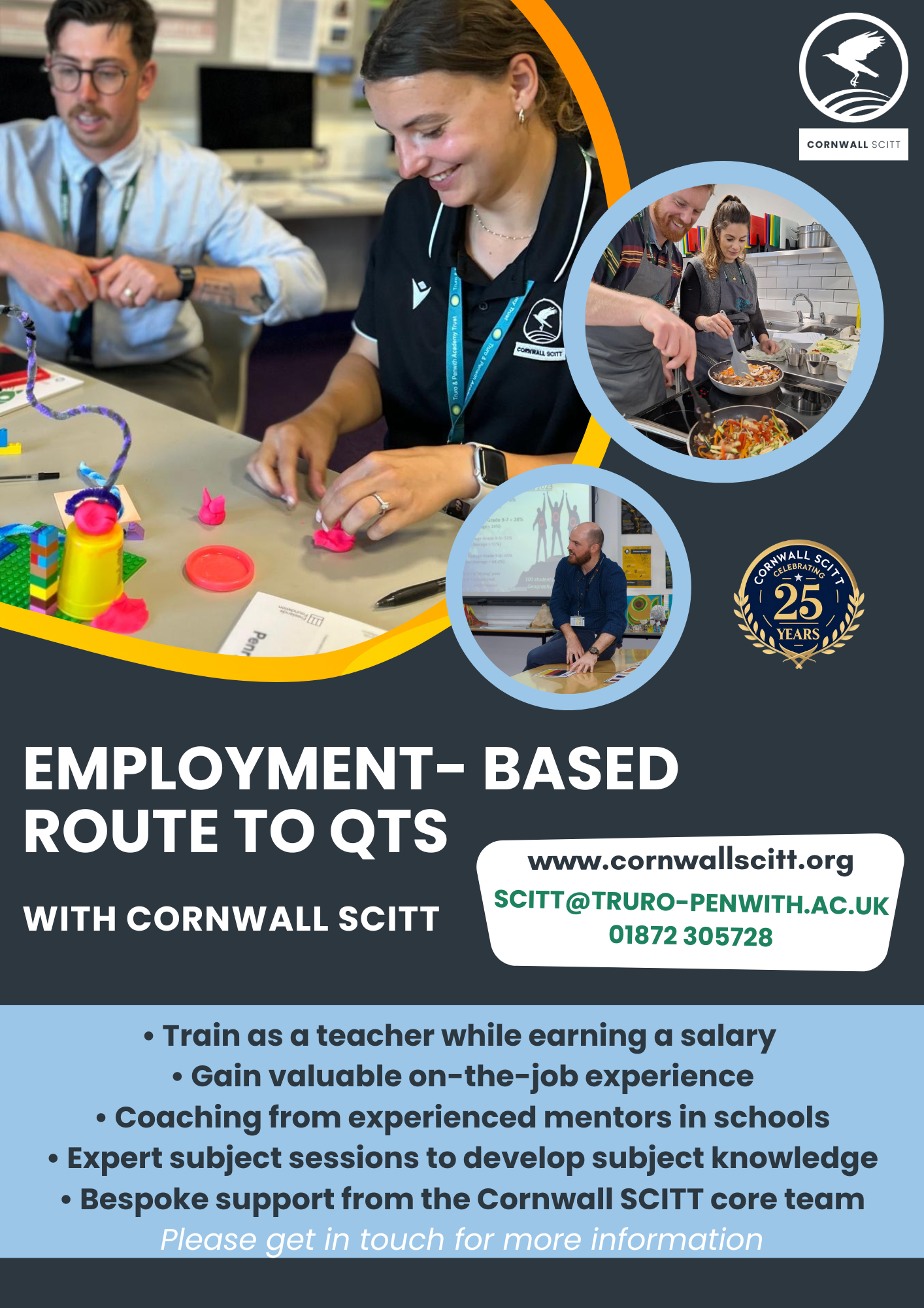 Cornwall SCITT (Secondary) offers an Employment-Based Route to Qualified Teacher Status – enabling trainees to earn a salary while they train.